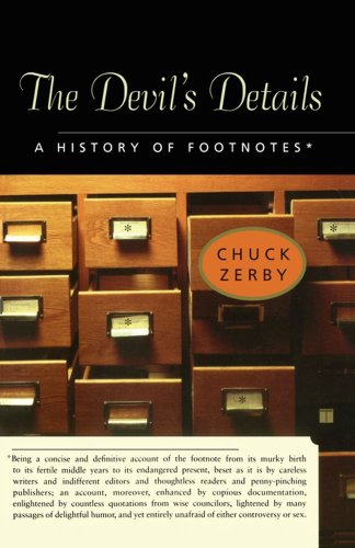 In a story that boasts a marvelous plot and a rogues' gallery of players, Zerby examines traditional footnotes and their less-buttoned-down incarnations, as when used by pornographers. Yes, The Devil's Details is full of surprises: Zerby hunts down the first bona fide fully functioning footnote; unearths a multivolume history of Northumberland County, England, that uses one volume for a single footnote; and uncovers a murder plot. He even explains why footnotes are like blind dates.